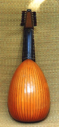 Lutes 7, 8 & 9 can be built as 10 course instruments with a string length of 63.5cm to enable the basses to sound out well, in line with Dowland's remark that around 1600 the necks of lutes were lengthened to give 10 frets on the neck. This is my recommended solution to the 10 course lute in G, which probably never existed but now seems to be much in demand! The version on the left below is based on the Hieber body (No. 7) and is made in Rio rosewood with holly lines between the ribs. The version on the right below is based on the Venere body (No.8) and is made in yew with ebony lines between the ribs. Price, extra: £400 To return to the main catalogue click here |